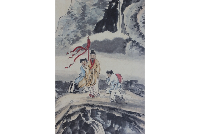 LI ZHEN: A FRAMED INK ON PAPER PAINTING 'IMMORTALS'    李震 '群仙祝壽圖'紙本