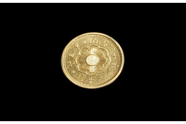 An image of a sunburst superimposed over the sacred Ya ta no Kagami mirror is displayed in the center of the obverse. The state title of Japan is written from right to left along the left rim of the coin as “Great Japan”, while the date “Meiji 30 Year” (1897) is written in the same direction and extends from the upper to the right periphery. Written at the bottom of the obverse is the Japanese value “Twenty Yen”. All three of the legends are separated from each other by small Government Seals. The Imperial Seal of Japan is featured at the very top of the reverse. Directly below it is the value, inscribed vertically as “Twenty Yen”. A wreath starts at the bottom of the coin and extends up both sides of the reverse before ending near the Imperial Seal.