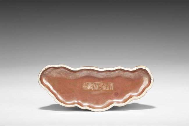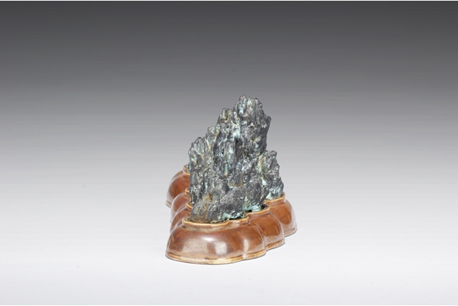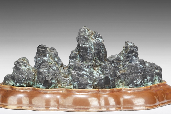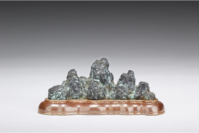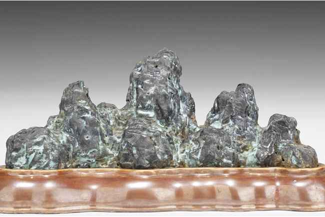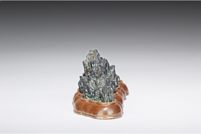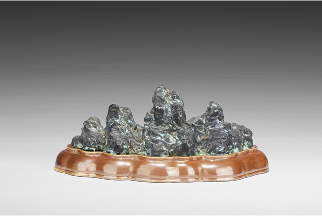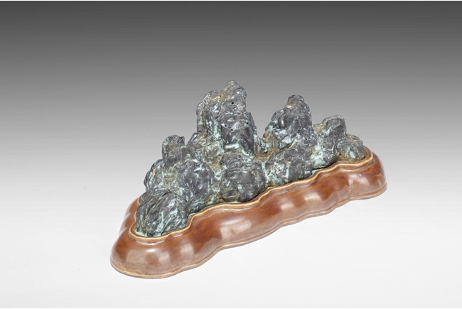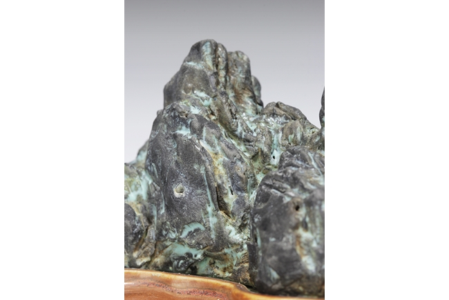 Of mountainous form, the porcelain brush holder imitates the stone’s shape, color, and texture, with six character mark “QIANLONG” mark on the bottom. Qing Dynasty period