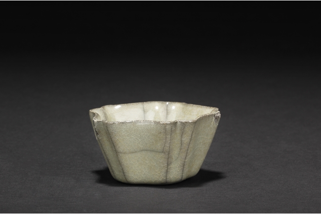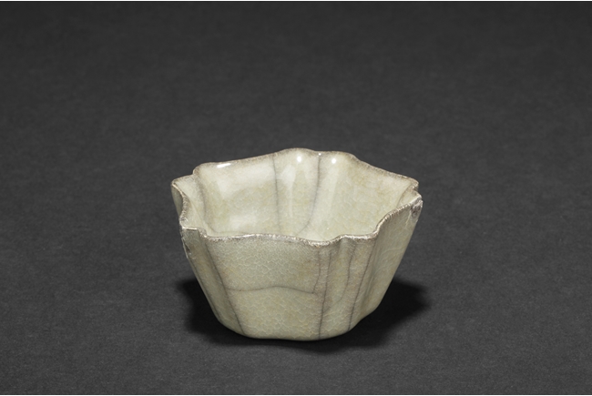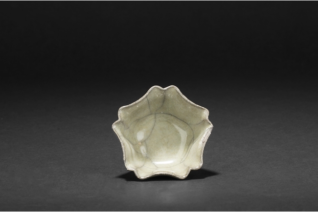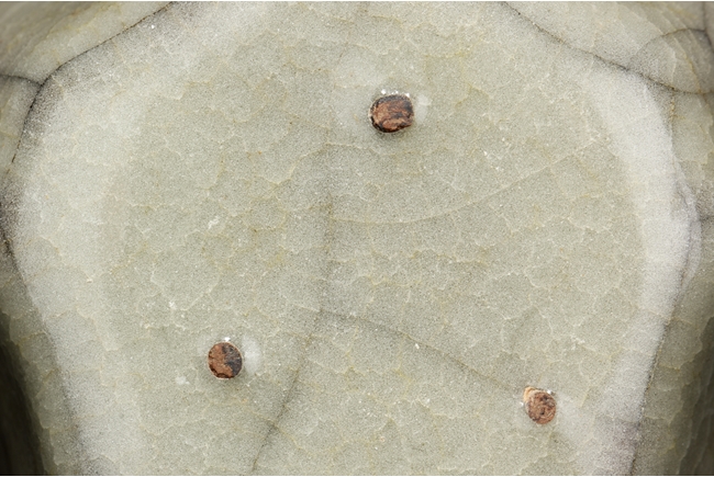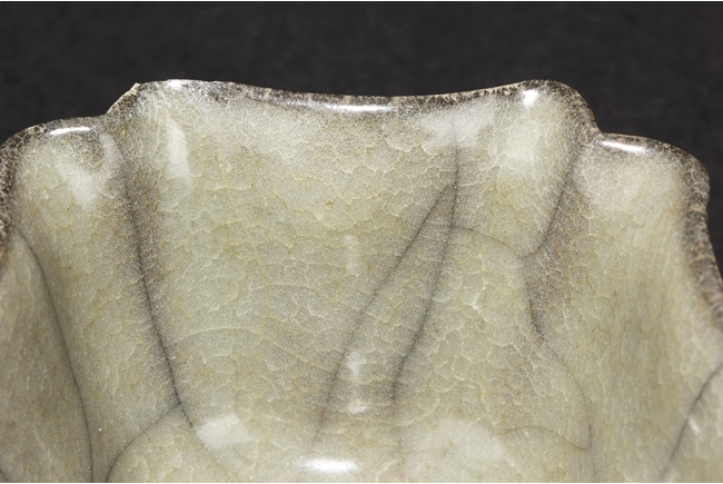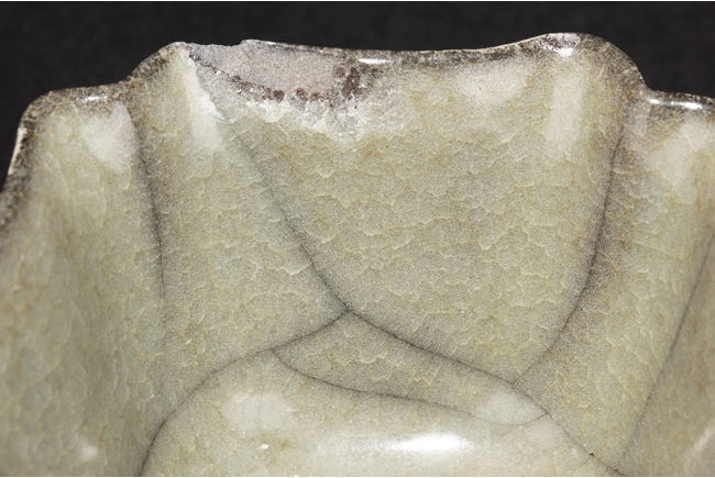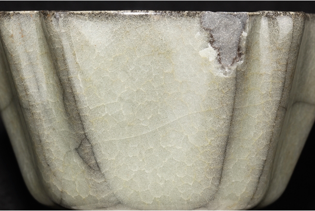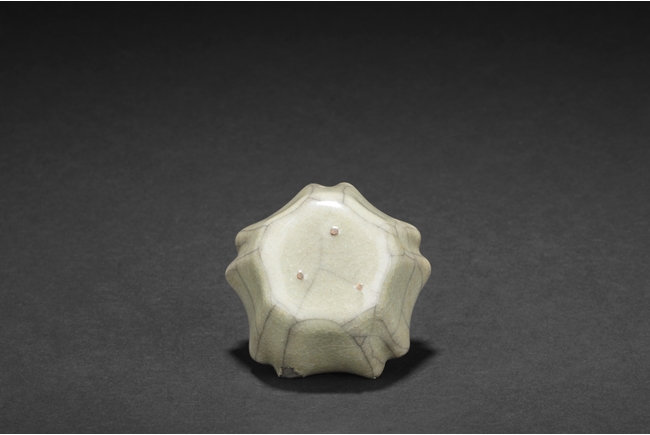 Of sunflower floriform, the washer glazed in celadon green color, with crackle patterns throughout, the bottom with three points of burn marks. Few visible damage and cracks on the washer. Qing Dynasty period