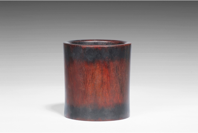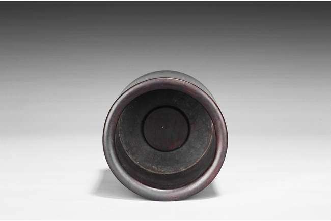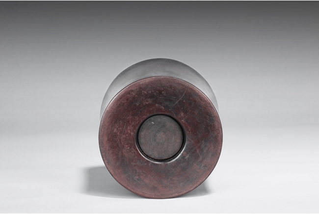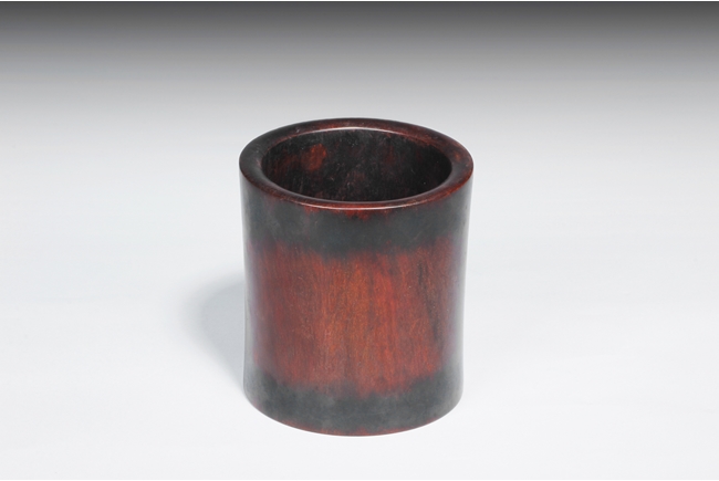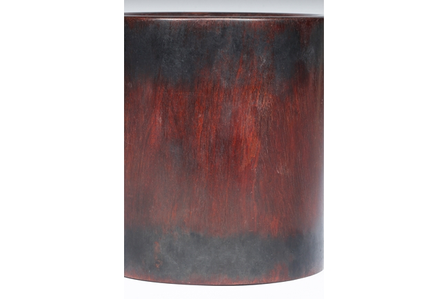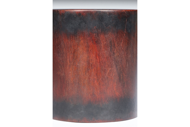 Of cylindrical form with slightly waisted body, the rim and base with darker color, while body with deep dark red. Includes en-suite plug on the bottom. Qing Dynasty period