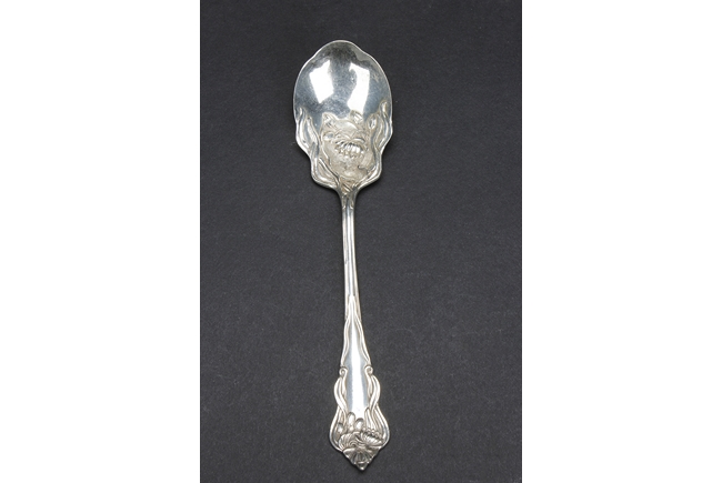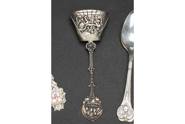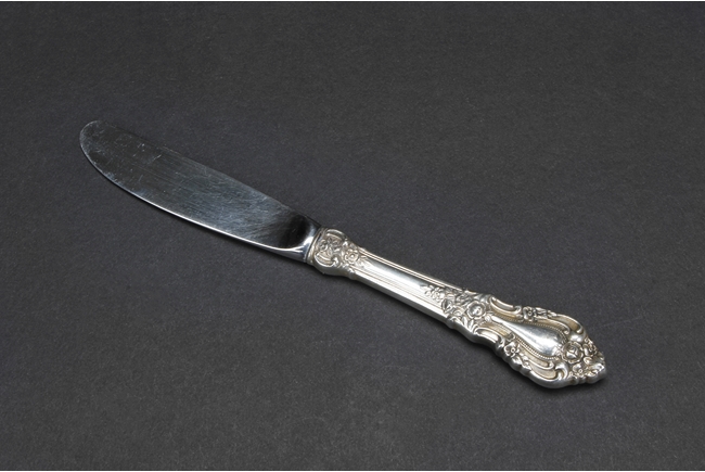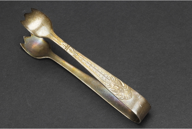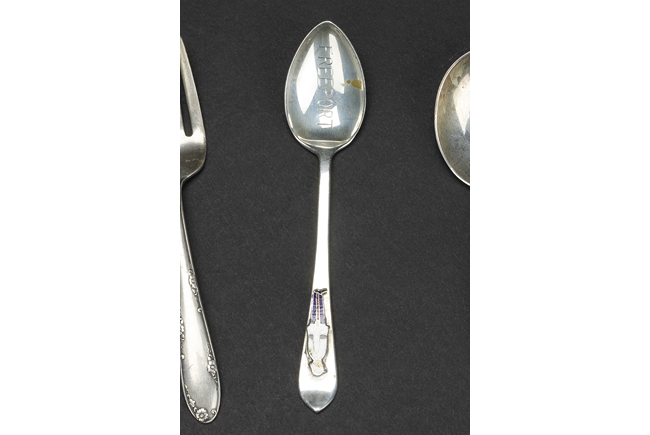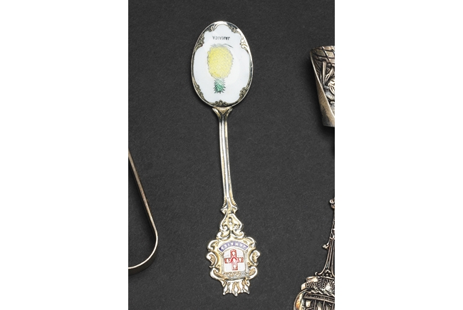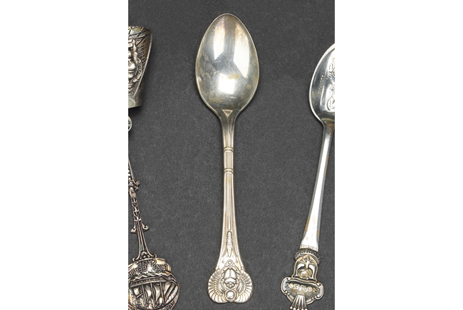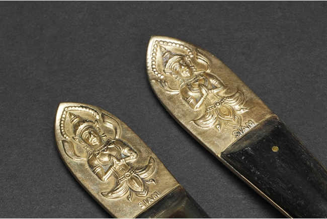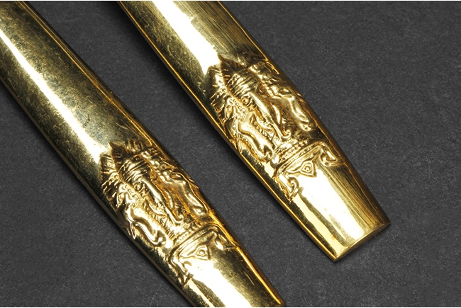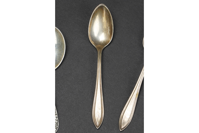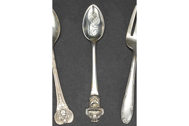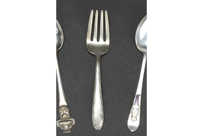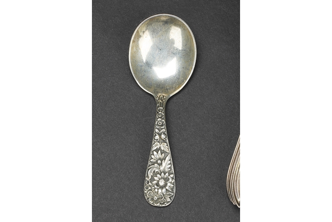 The group includes multiple sets of gold plated and silver utensils, such as forks, knives, spoons, and others. Includes a holding box.