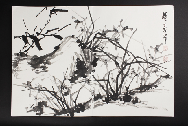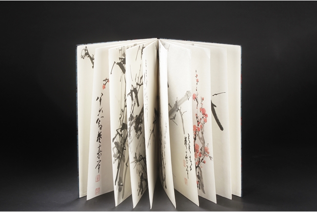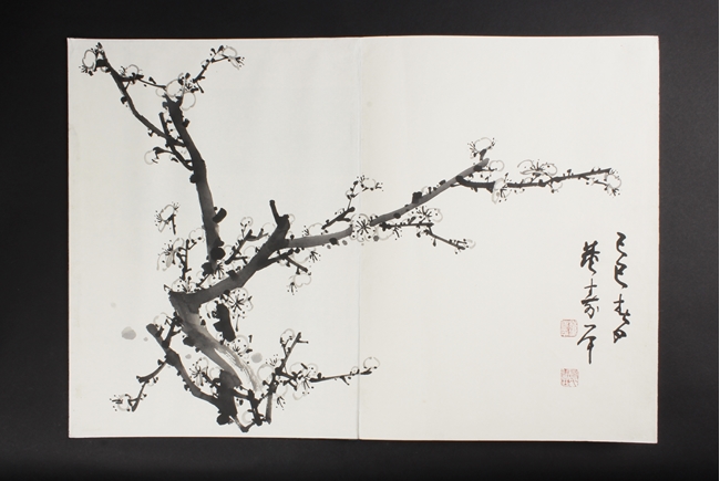 The booklet includes eight paintings expanding to sixteen pages, mostly depicting different plants, trees, bamboo, and flowers, all with artist signature and mark attributed to “Dong Shouping”. Four pages with damages.