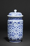 A BLUE AND WHITE 'FLOWERS' JAR WITH COVER