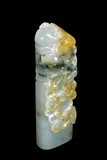 A JADEITE CARVED 'QUAIL AND GRAPES' SEAL