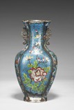 清 銀胎掐銀絲琺瑯菊花雙耳瓶 乾隆年製款