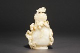 A WHITE JADE CARVED CHI-LONG VASE WITH COVER