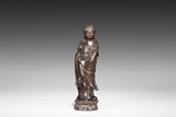 A SMALL-LEAF ZITAN WOOD CARVED GUANYIN FIGURE