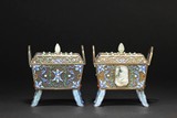 A PAIR OF CLOISONNE ENAMEL AND DECORATED CENSERS