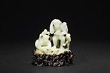 A WHITE JADE CARVED 'MONKEYS' FIGURAL GROUP