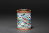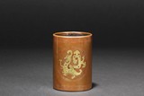 A COPPER-RED DECORATED 'FLOWERS' BRUSH POT