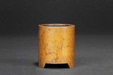 A BRONZE SILVER-INLAID TRIPOD BRUSH POT