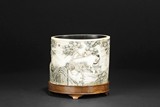 十九世紀 白玉雕人物筆筒 乾隆年製款