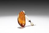 AN AMBER CARVED SHOULAO WITH WHITE JADE ORNAMENTS