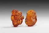 清 琥珀雕壽星翁配白玉珠子 重64克