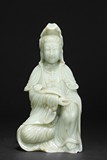 A FINE PALE GRAYISH-GREEN JADE CARVED GUANYIN FIGURE