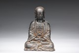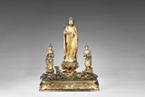 A GILT-LACQUER WOOD CARVING OF SHAKYAMUNI AND TWO BODHISATTVA