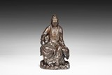 A ZITAN WOOD CARVED SEATED GUANYIN FIGURE