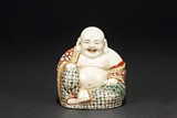 A CERAMIC FIGURE OF MAITREYA BUDDHA