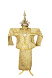 A RARE YELLOW SATIN GUARDSMAN'S UNIFORM WITH HELMET