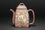 A PAINTED ZISHA STONEWARE 'FLOWERS' TEAPOT