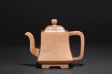 SHI JIZHANG: A PAINTED CLAY SQUARE TEAPOT
