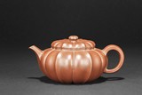 LONG WEN: A RED CLAY 'NARCISSUS' TEAPOT