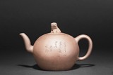 YONG QING: A LARGE PURPLE CLAY 'LION' TEAPOT