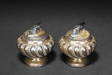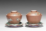 YANG PENGNIAN: A PAIR OF PAINTED ZISHA STONEWARE TEA CUPS SET