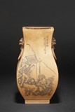清末民初 黃泥#漢客春曉#雙獅耳瓶