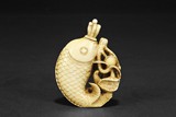 AN IVORY CARVED 'CARP' SNUFF BOTTLE