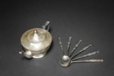 A SET OF SILVER TEAPOT AND SIX SILVER SPOONS