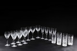 A SET OF TWENTY CRYSTAL WINE GLASSES AND SHOT GLASSES