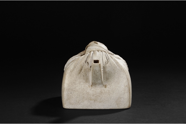 此壺為段泥摻細沙,造型即為一枚方印,用布包紮,形體飽滿挺括,布紋褶襇,栩栩如生,方形直流,壺鈕即為印包花結的頂端。墨林堂為同時大彬時代的文人項子京齋號。項元汴(1525-1590),字子京,號墨林,別號墨林山人,墨林居士,香嚴居士,退秘庵主人,惠泉山樵,墨林嫩叟,鴛鴦湖長,漆園傲吏等,浙江嘉興人,為明代著名收藏家、鑑賞家。此壺壺底上至壺身有修補痕跡。