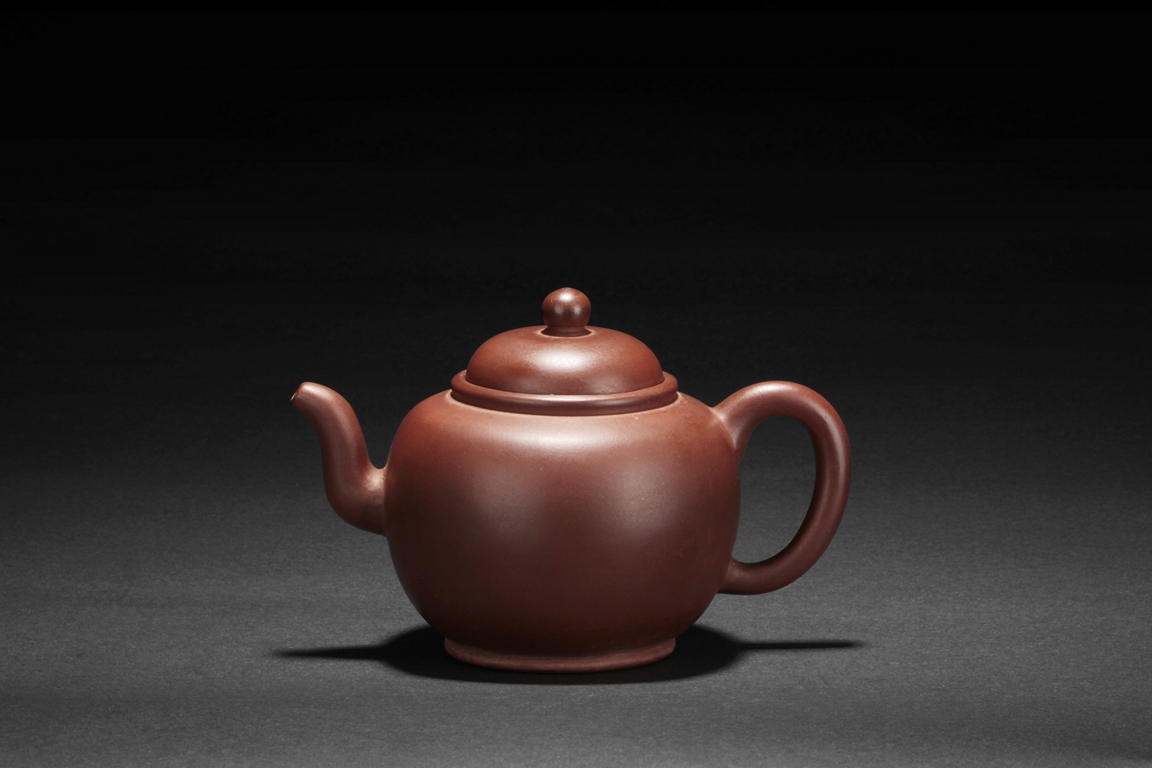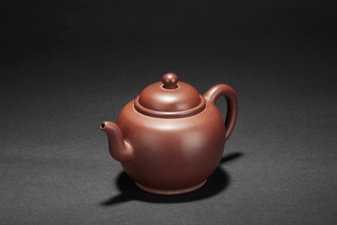 Of globular form imitating Imperial lantern design, with smooth surface and patina, the handle rounded similar to a ear, the spout in "Sanwanliu" design, the lid with a bead finial. Bottom with four character artist mark "Lu Caiting". Late Ming or early Qing Dynasty period. Not much information is available for the artist, but the well-made teapot remains excellent condition.