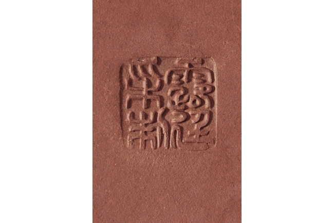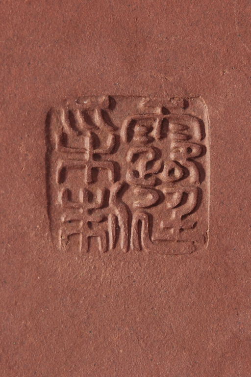 此壺泥料細膩堅實,包漿飽滿,整體觀之古意怏然,三彎流,細緻,耳形壺把,脛,肩,頸飽滿,嵌入式壺蓋,結構嚴實,整體線條剛柔秉之,明末清初之小壺,能一手盈握者,必屬精工細作之佳品。露採廷,作者生卒無從考,實屬遺憾,然此壺至今能保存良好,實為不可多得也。