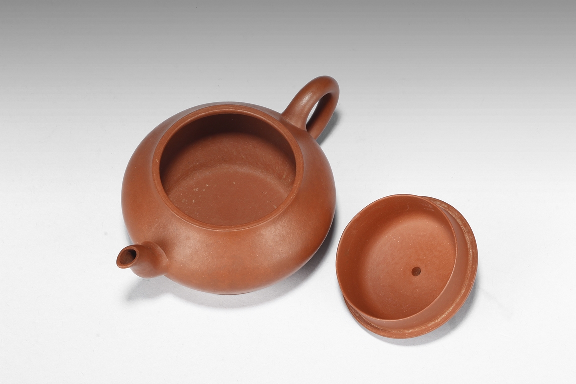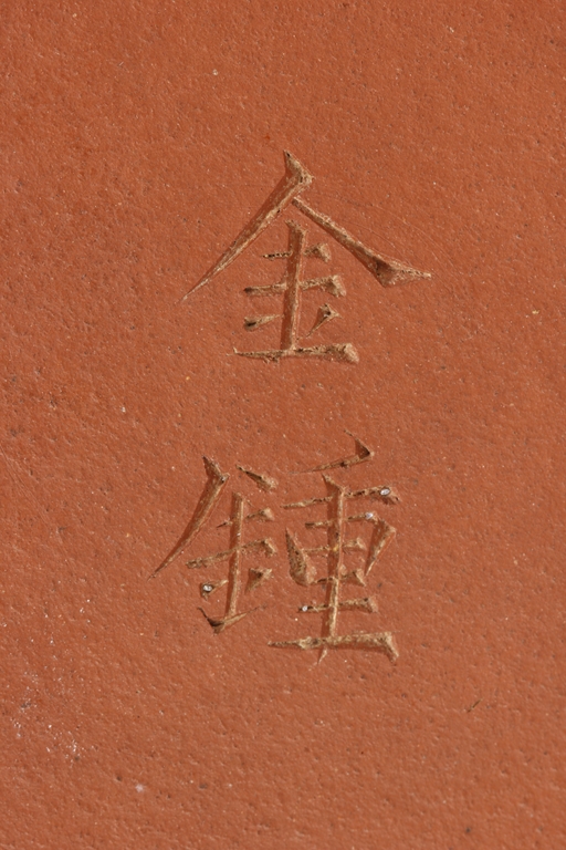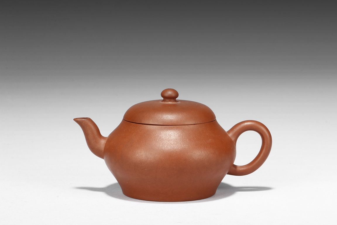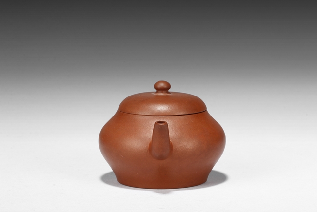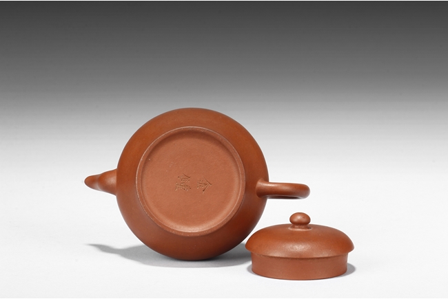 Of compressed globular form with curved top and bottom, the thinly potted Liupei teapot was difficult to make, and it is an excellent teapot of the flattened lamp design. Bottom bears two character "Jin Zhong" mark. Liu Peisheng, birth and death unknown, was active during early Qing Dynasty period. This type of teapot was popularized from early Qing Dynasty to late Qing Dynasty period, with small changes during different reigns. This particular teapot has a slightly bolder spout, so it was likely made during Qianlong period.