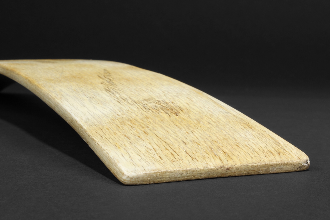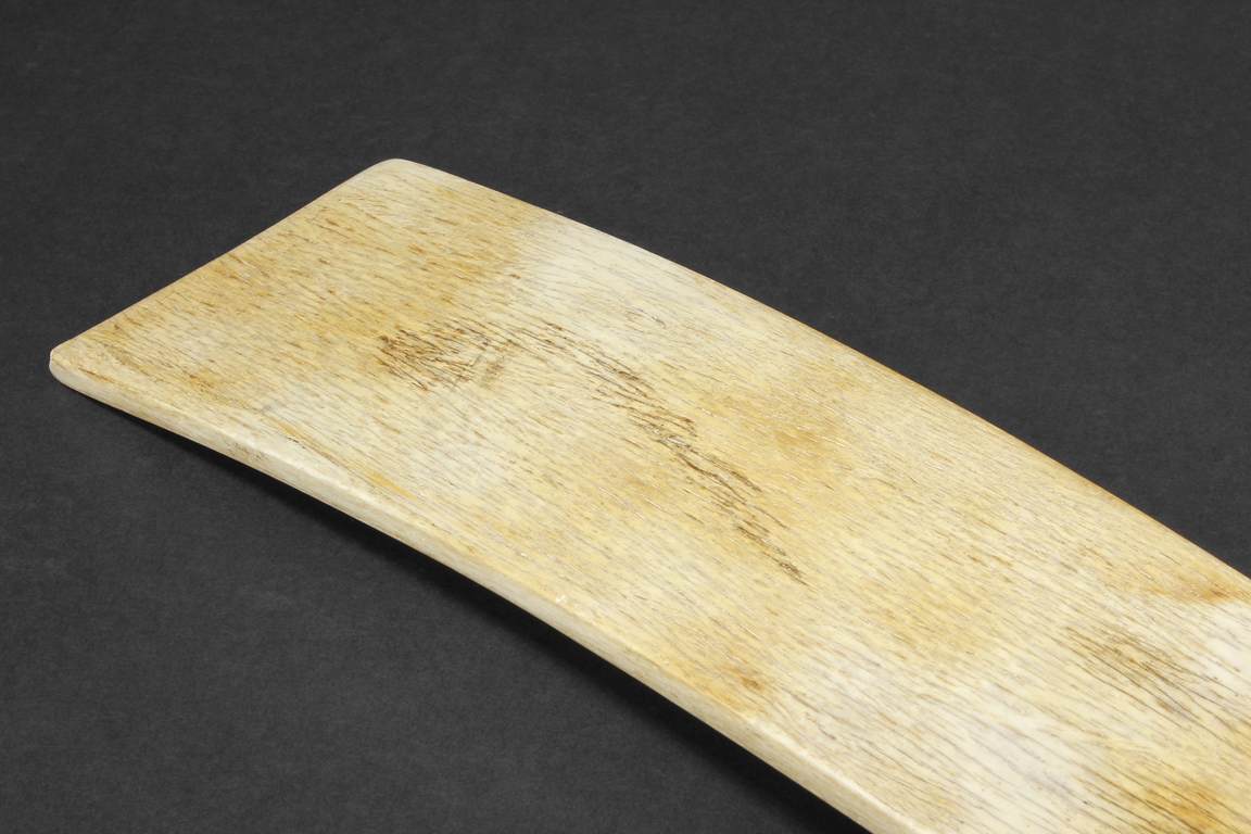 The ivory tablet is of rectangular shape, slightly bend in the middle to having the both tips bending inwardly, tablet plate was for the use as a memorandum for the ancient Chinese official court meeting with their emperor. Ming dynasty period.