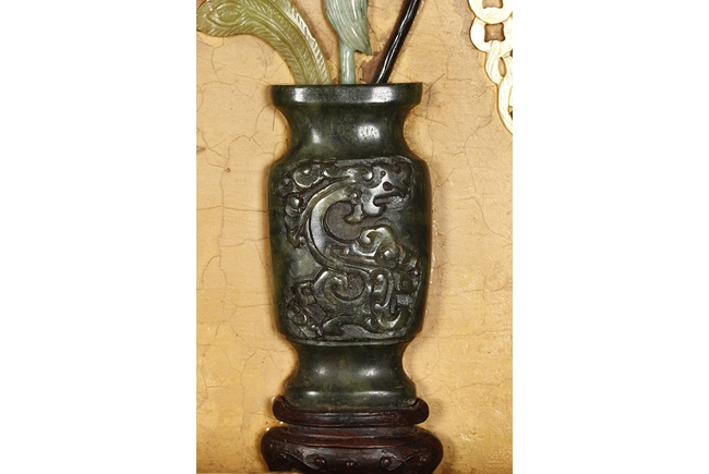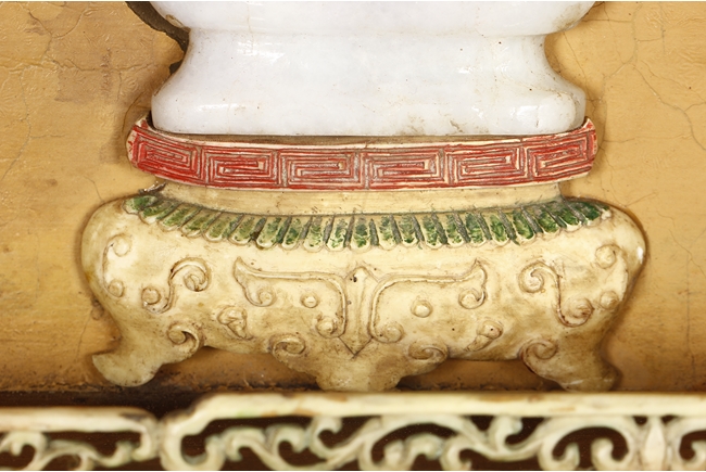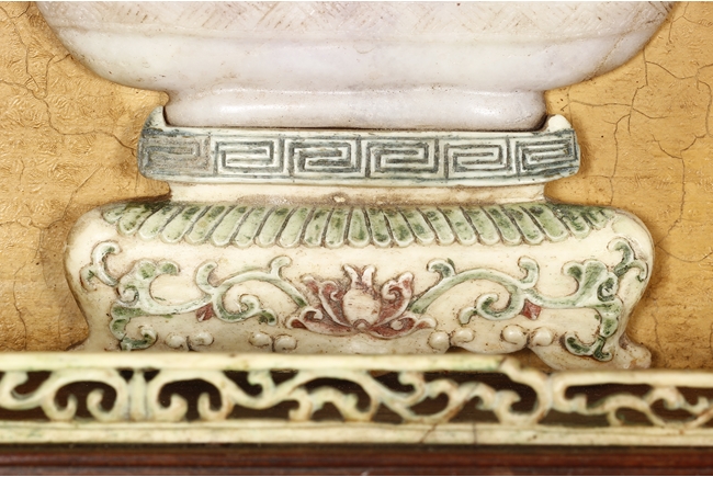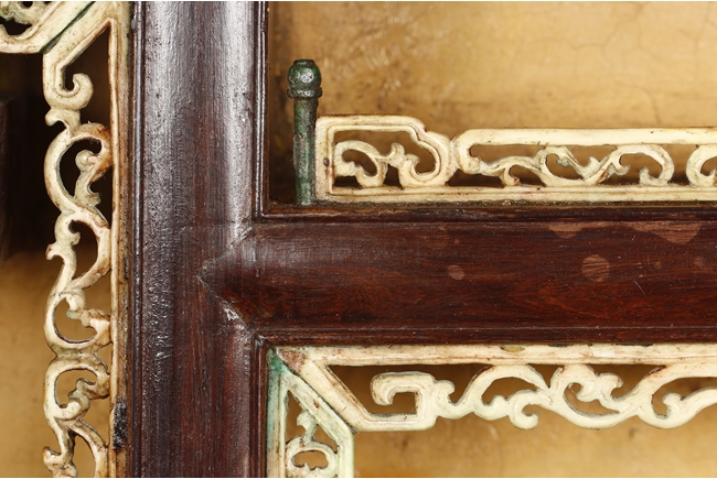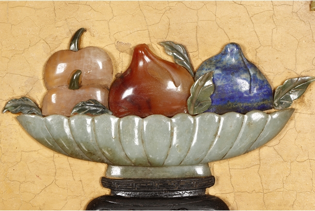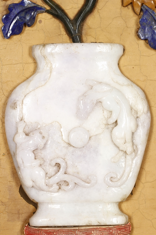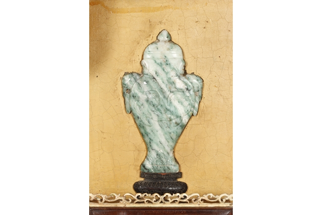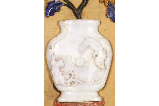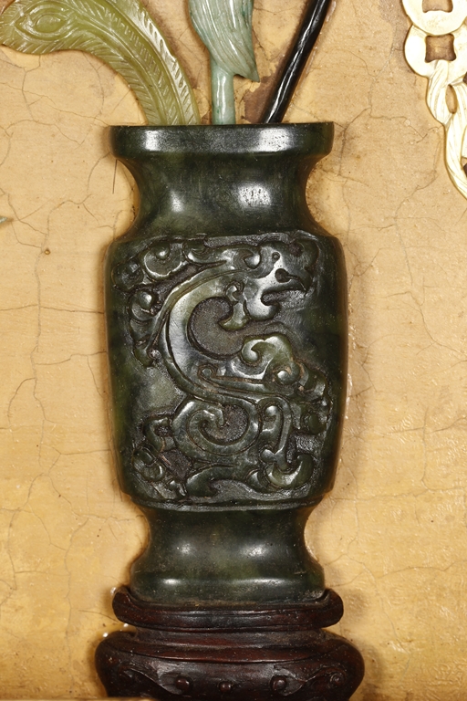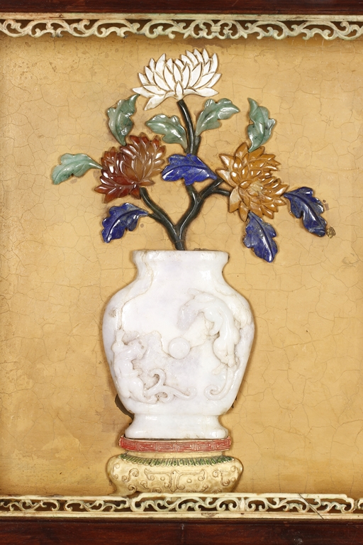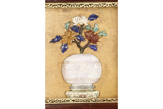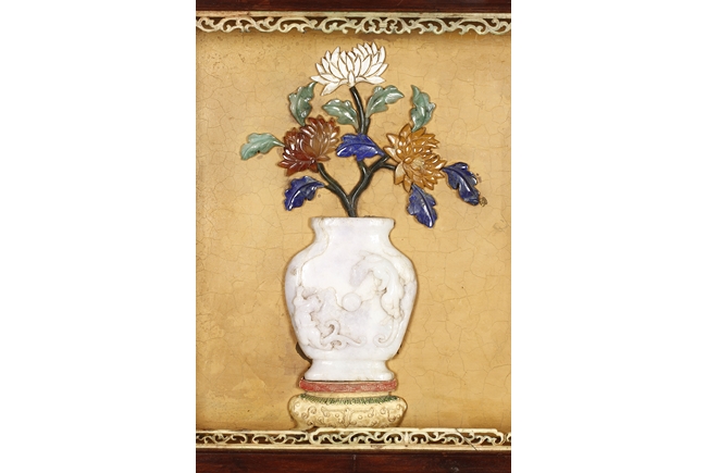 此對掛瓶做工精細,用料考究繁多,包漿好,佈局合理, 風格古樸,類似掛屏可參考三聯書店2006年出版的《清代宮廷生活》一書。