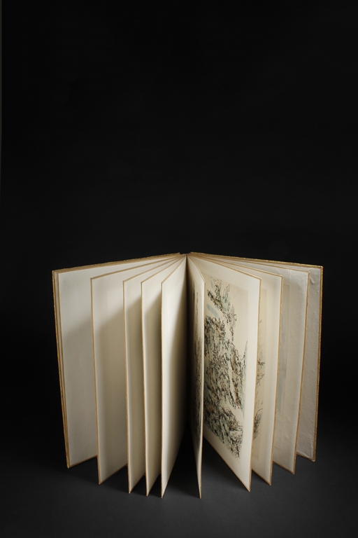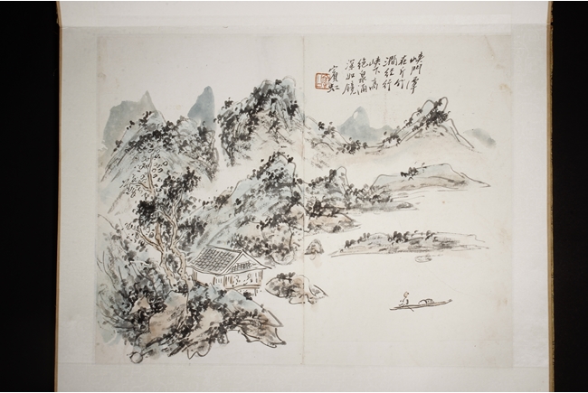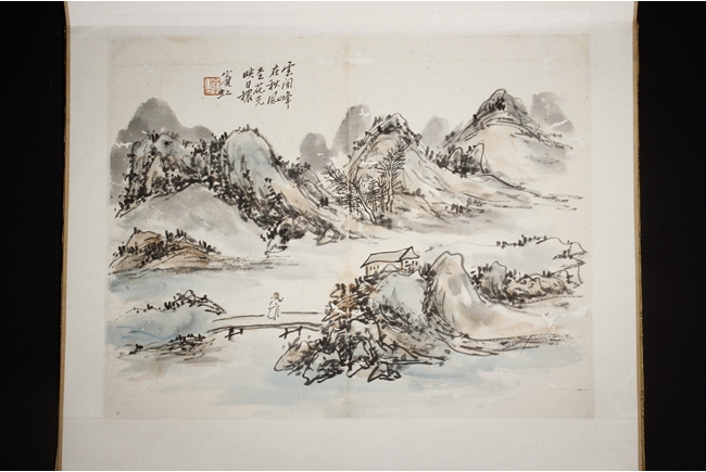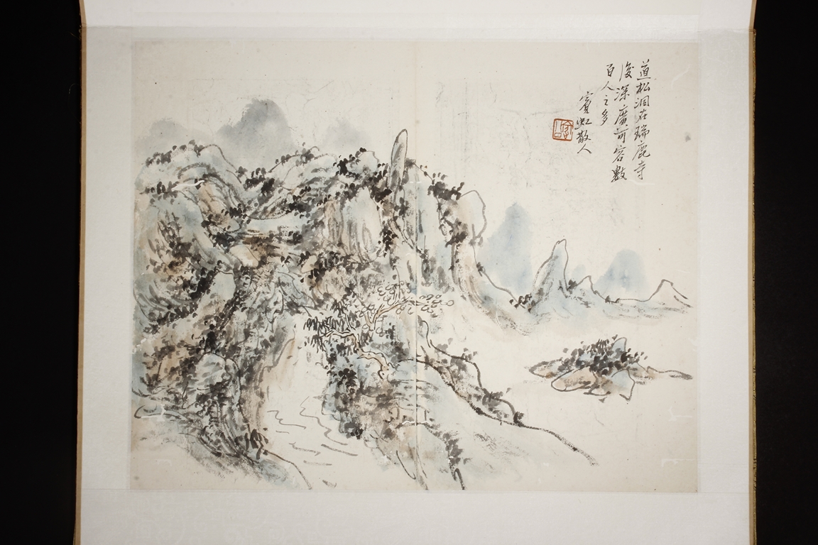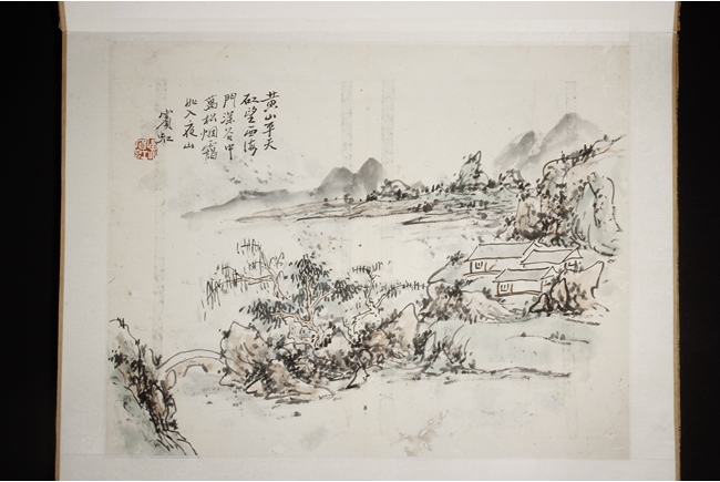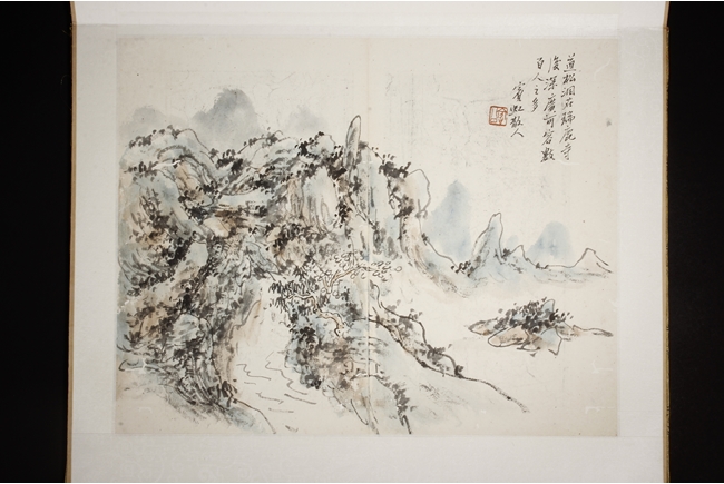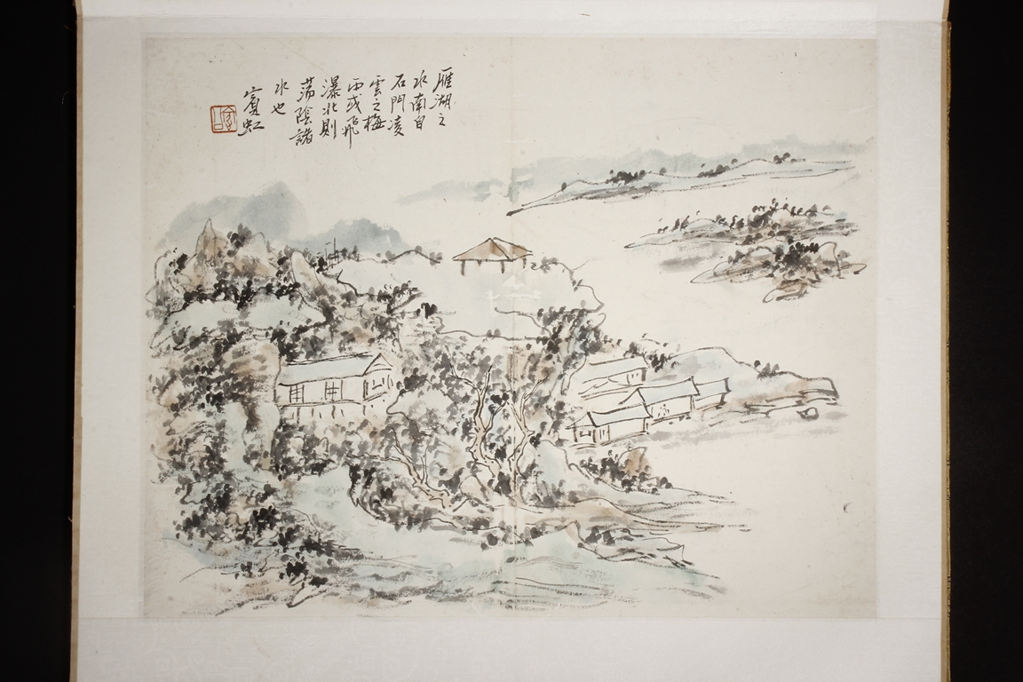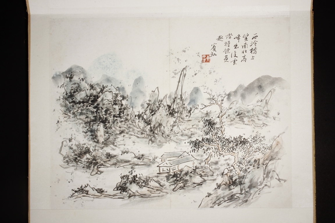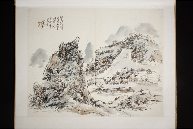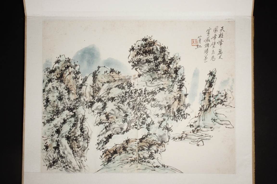 This booklet of painting is attributed to Huang Binhong, with seven pages of mountainous landscape of painting and one page of intro in Chinese writing.