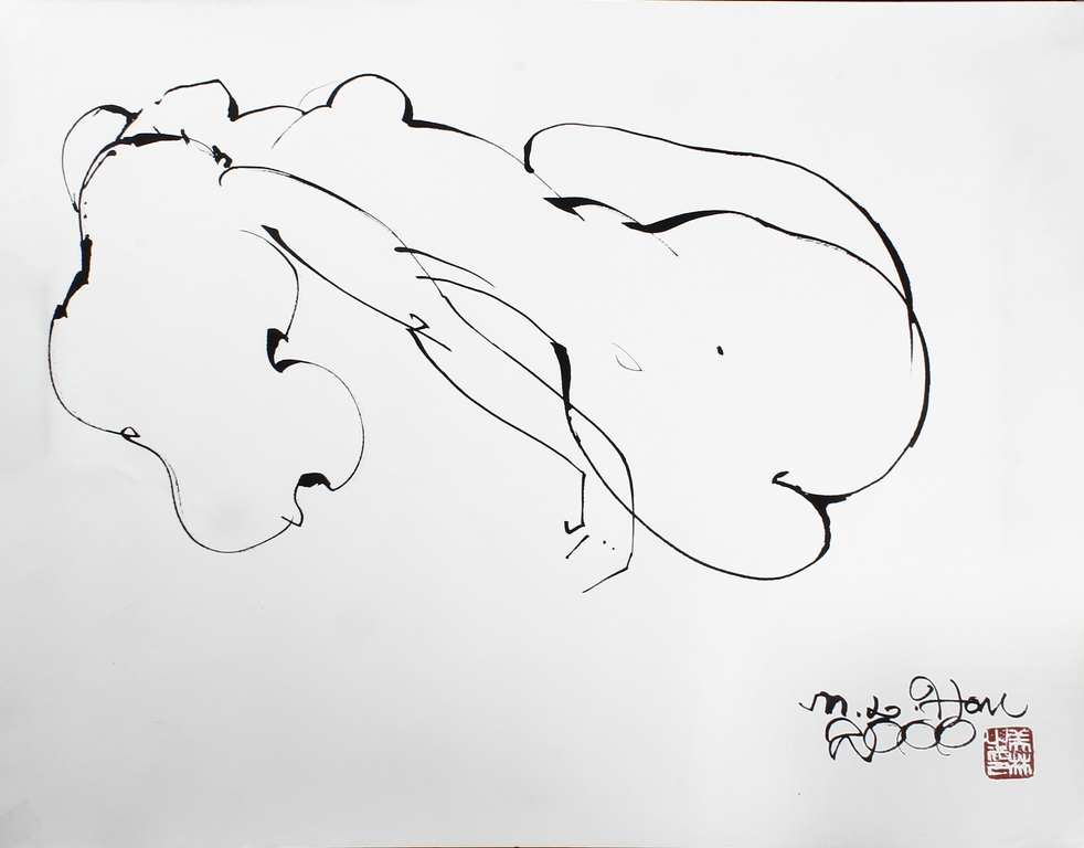 Ink on paper, the drawing depicts a sketch of female figure drawing, with artist signature and mark "Han Meilin" in the bottom.