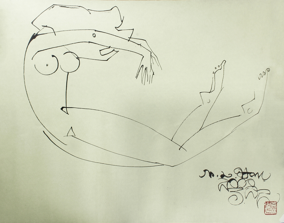 Ink on paper, the drawing depicts a sketch of female figure drawing, with artist signature and mark "Han Meilin" in the bottom.