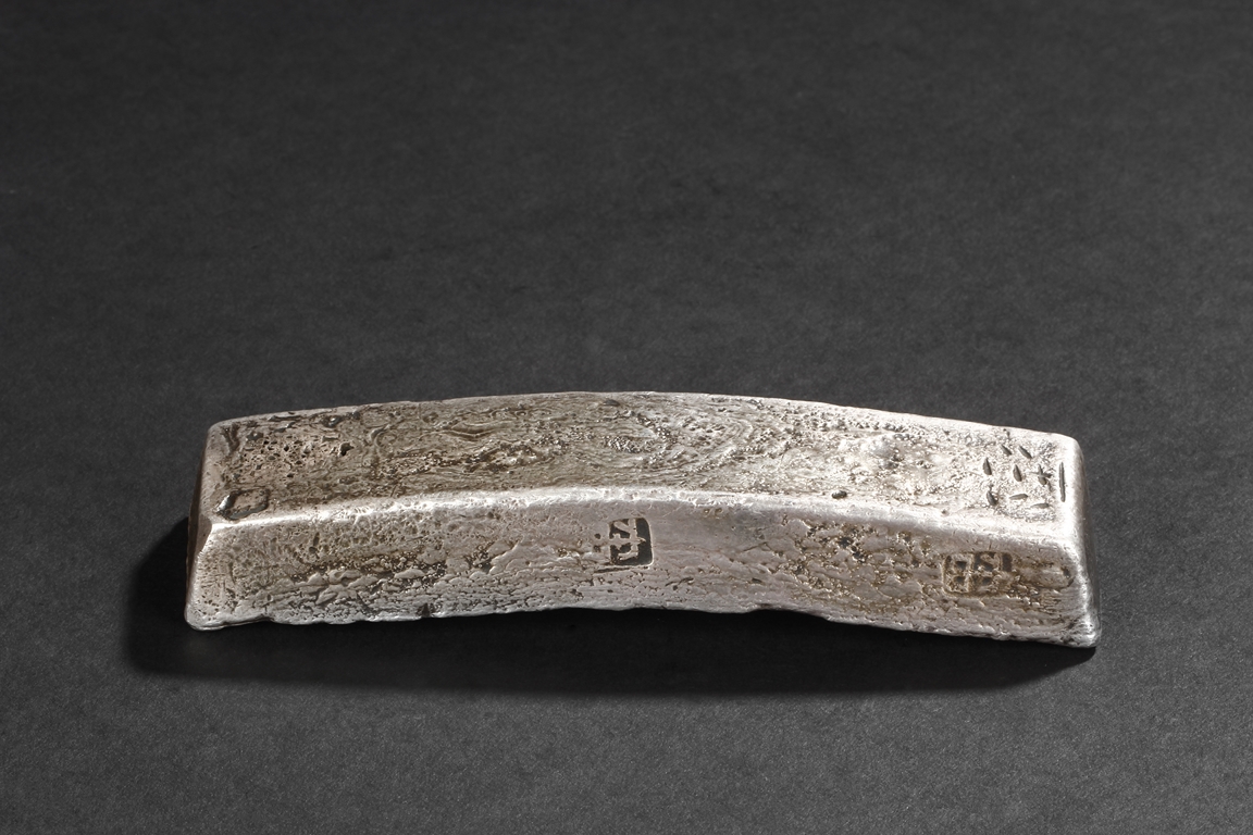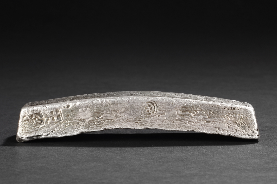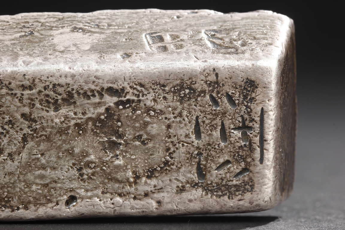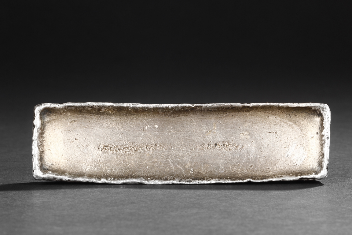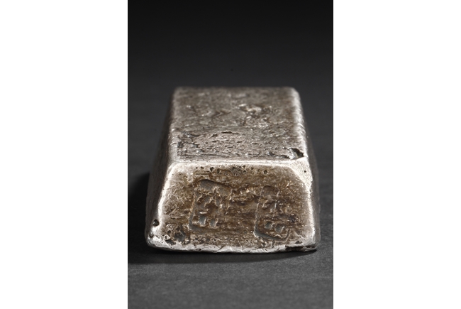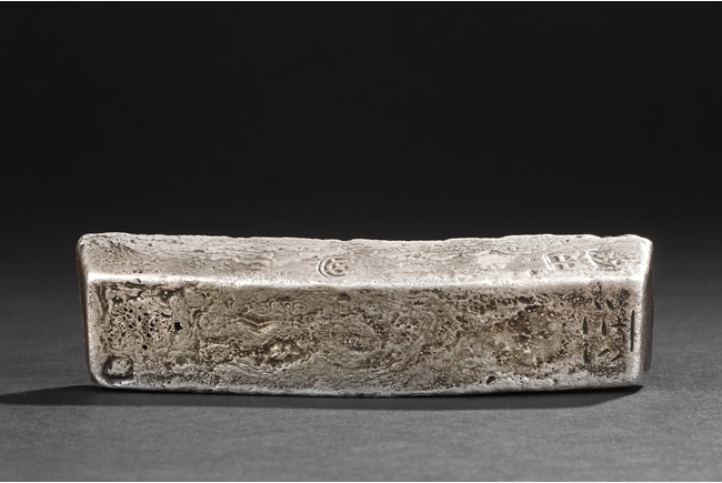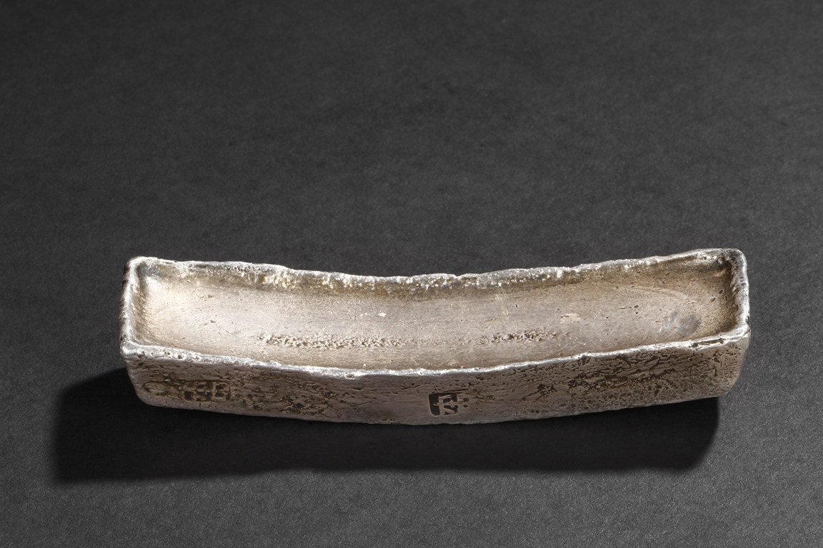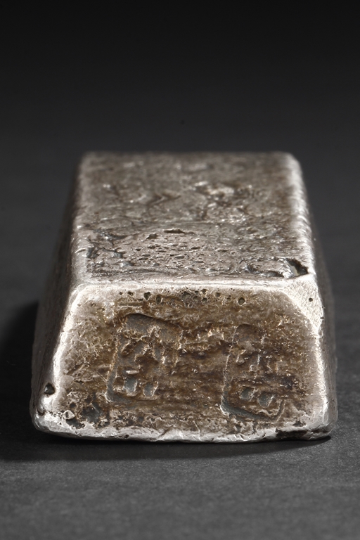 In the form of rectangular bar with slightly curved shape , this silver ingot is inscribed with characters and marks on top and four sides. Qing Dynasty period. Sotheby's paris, June 2013, lot 185.