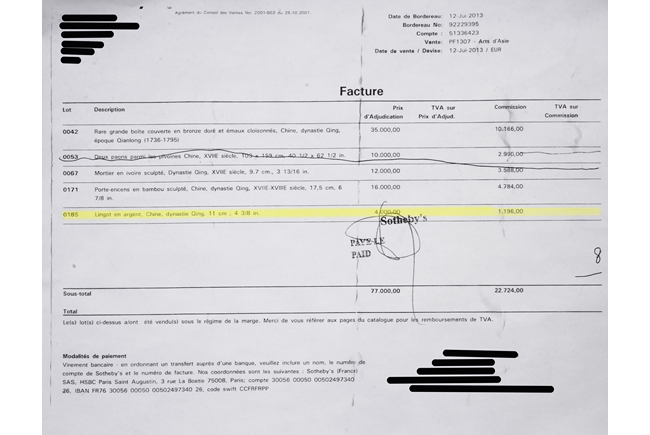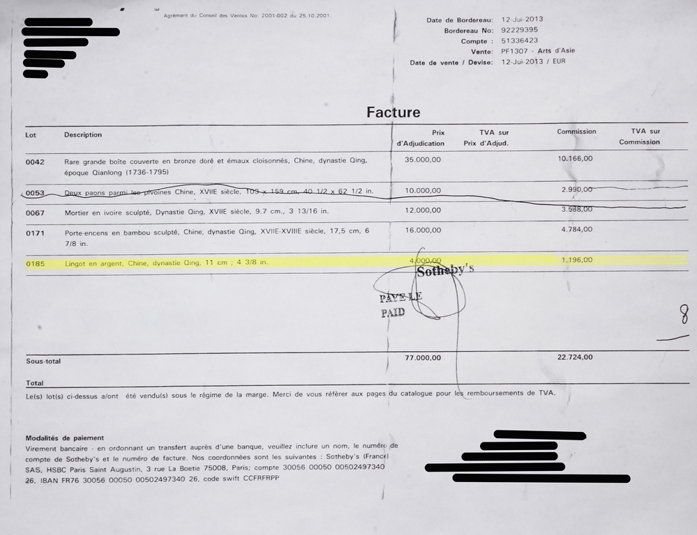 曾在2013年6月法國巴黎蘇富比上拍拍號"185