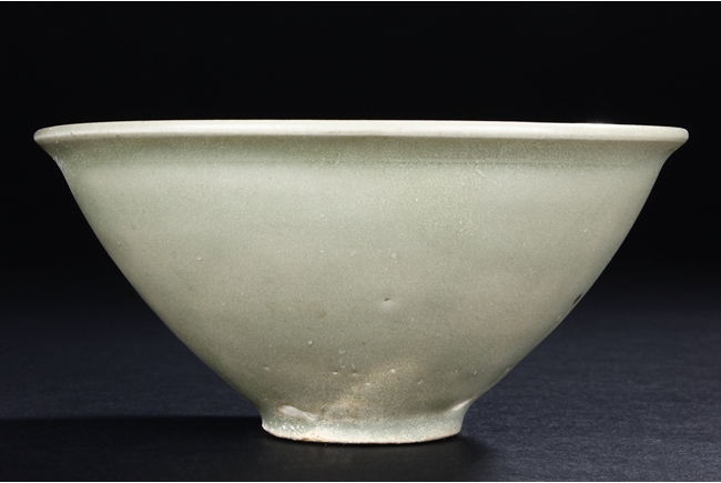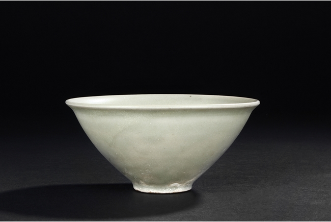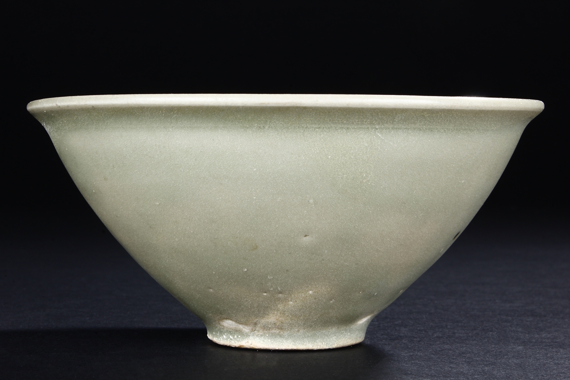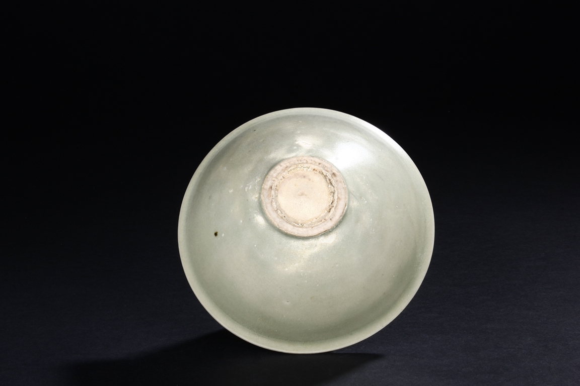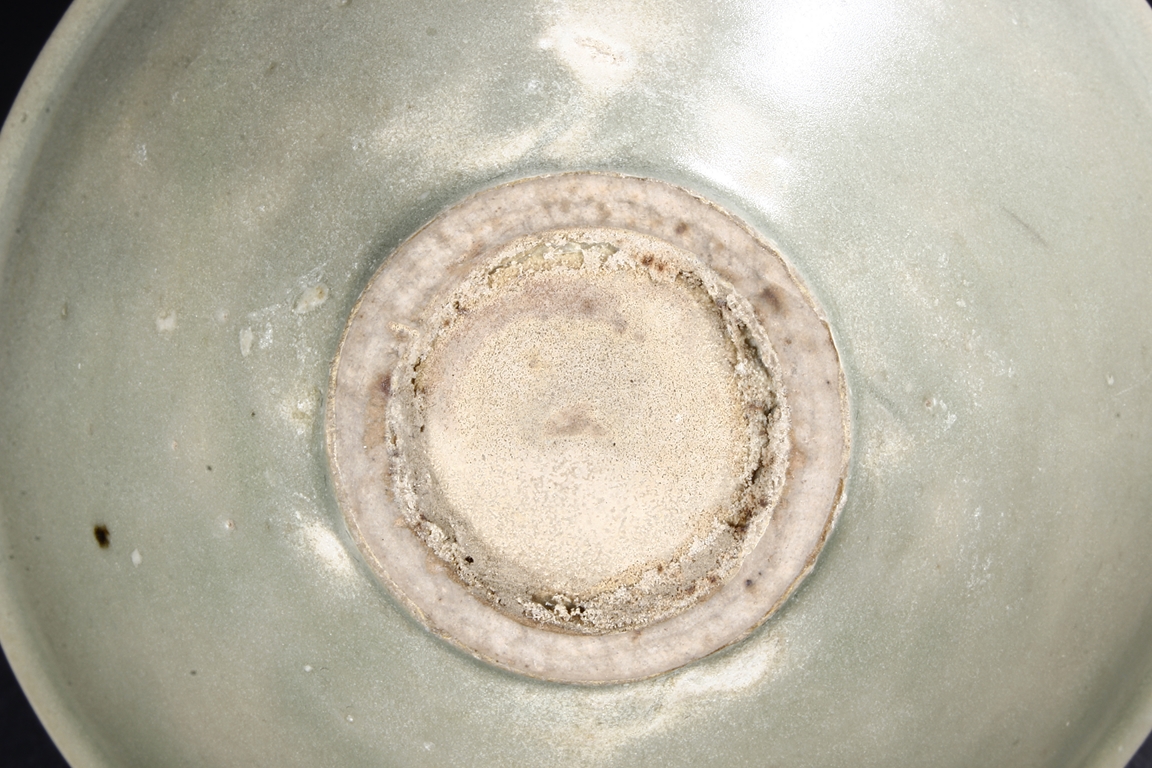 The steep sides tapers sharply towards the ring foot, the rim slightly flared, body covered in celadon glaze, the base remains unglazed. Song Dynasty period.