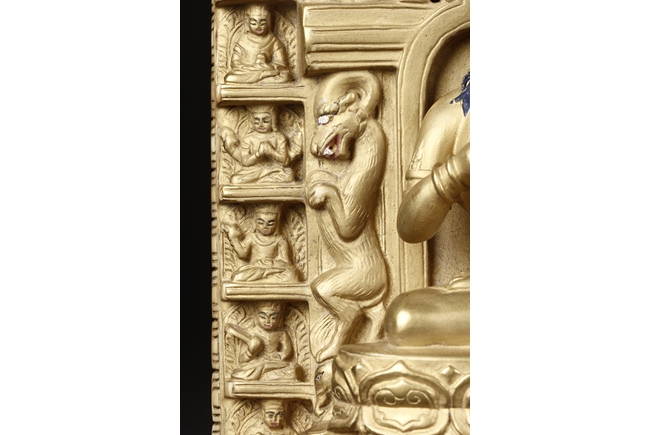 此佛像因年代久遠,其描金已脫落,現品相是由洛杉磯華人藏家Ms.Grace Chan於1995年重塑而成。 由洛杉磯藏家Ms.Grace Chan提供。