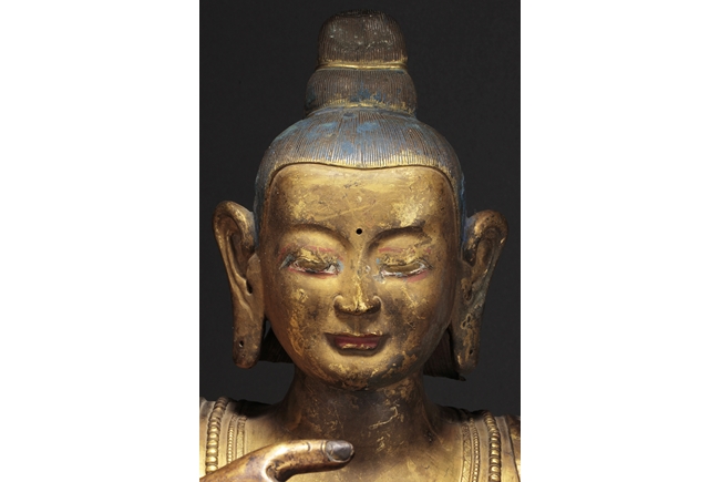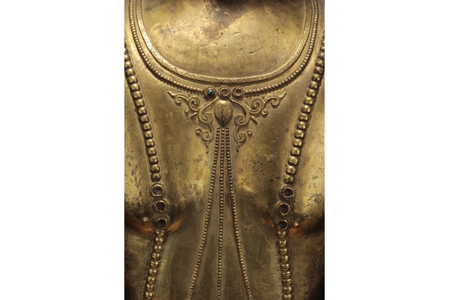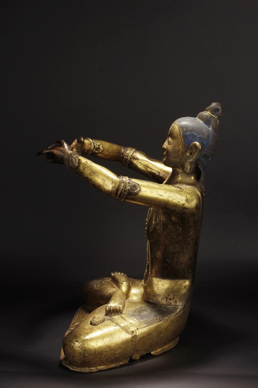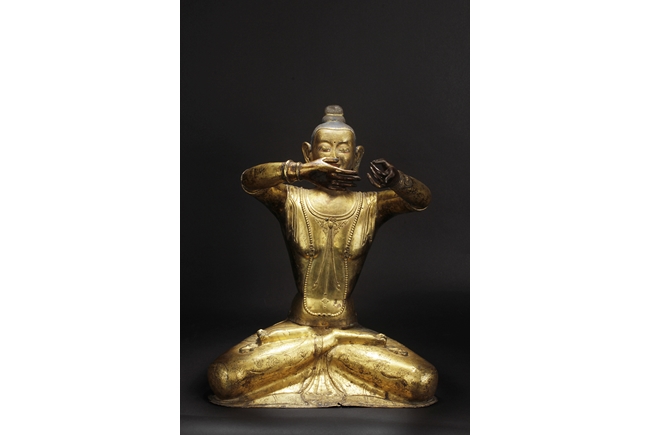 此鎏金坐像做工精細,莊嚴,生動,紋飾流暢,器形大方,造型獨特,為佛像收藏者所愛。 由台灣八畝園所提供。