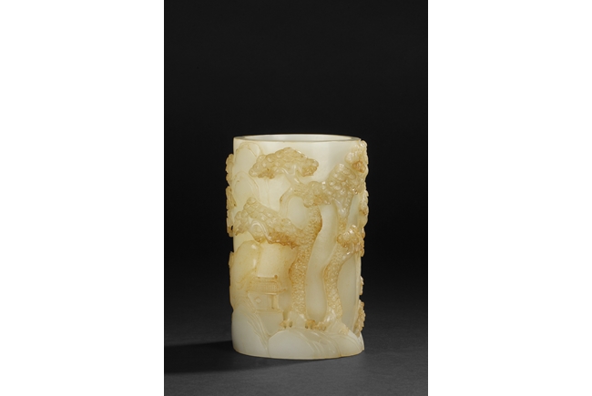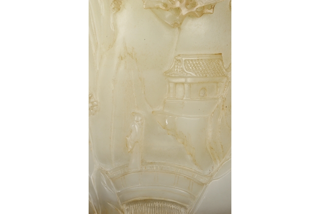 此筆筒所雕人物,樓閣,小橋,松樹均栩栩如生