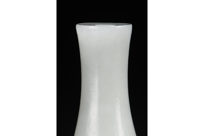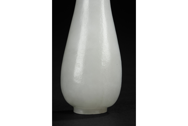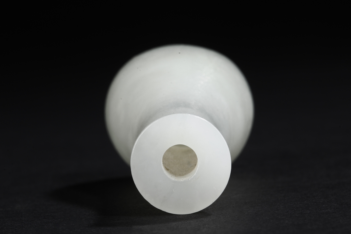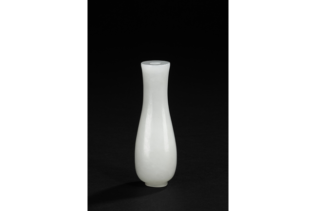 Of slender and elegant baluster form, the small bottle made from white jade, the stone of soft white color without any inclusions. Qing Dynasty period.