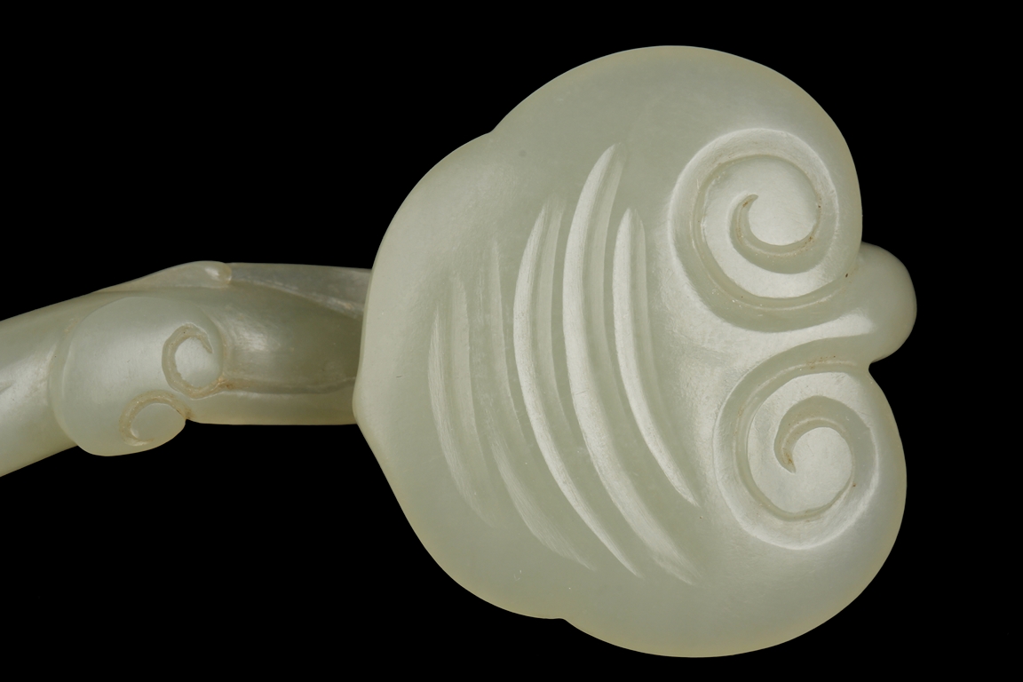 此白玉如意,雕工精細,佈局合理,風格古樸大方
